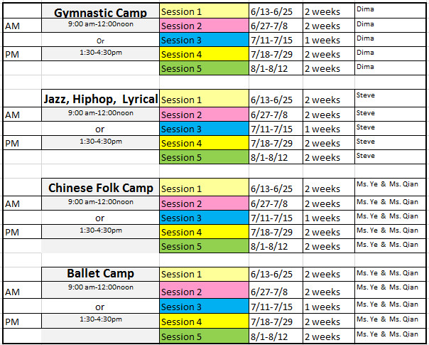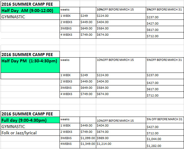 2016 SUMMER CAMP CALENDAR AND PRICES